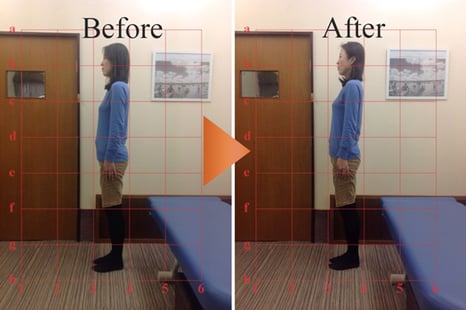 骨格がネジレていると、姿勢が悪くなります。目を閉じて歩いてみると、まっすぐに歩けなくなります。